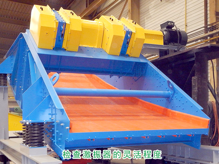 檢查激振器的靈活程度,用手轉動皮帶輪使偏心塊脫離平衡位置后,應出現數次自由擺動,如篩子到貨后時間超過半年后才安裝,激振器應全部拆下重新清洗加油。