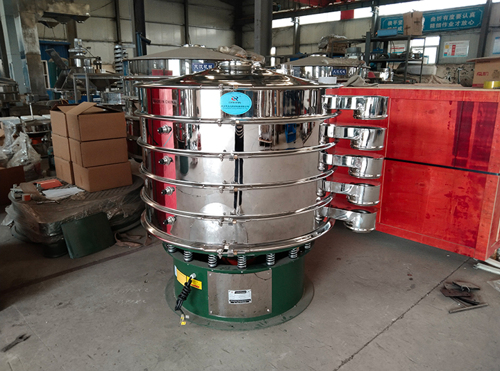 旋振篩是由電機提供振動源,從進料口投入物料,在振動狀態下穿過篩網直到出料口;防塵蓋、束環是為振動篩提供封閉狀態的。