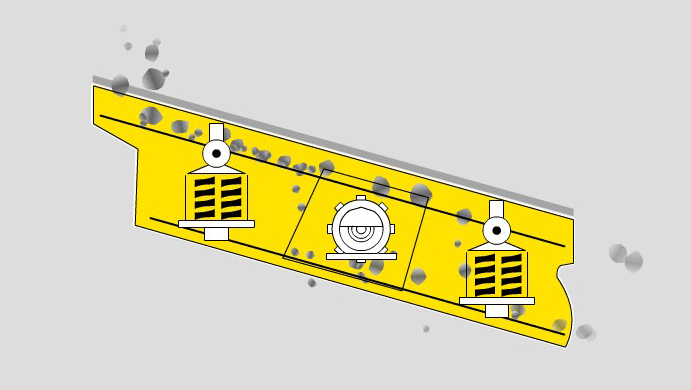 高效振動篩是利用振動電機或普通電機激振器做為振動源,使篩體沿激振力方向作周期性往復振動,物料在篩面上沿直線方向作拋物線運動,從而達到篩分目的。